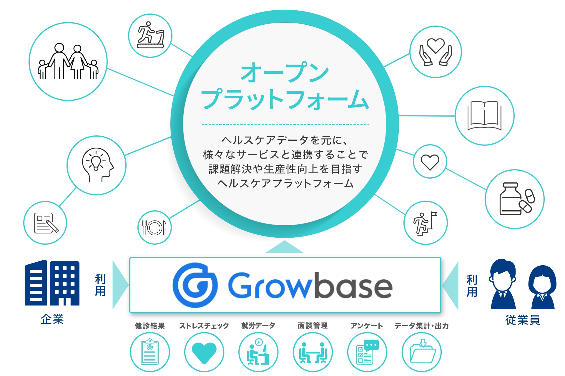 「Growbase」は、大企業を中心に1,5社以上での導入実績を持つ、従業員数千~10万人超規模の大企業及び企業グループに属する従業員の健康管理や健康経営®を支えるクラウド型健康管理SaaSです。健康診断結果、ストレスチェックデータ、残業時間等の就労データ、面談記録など従業員の心と身体に関するウェルネス・データをペーパーレスで一元管理・可視化します。
