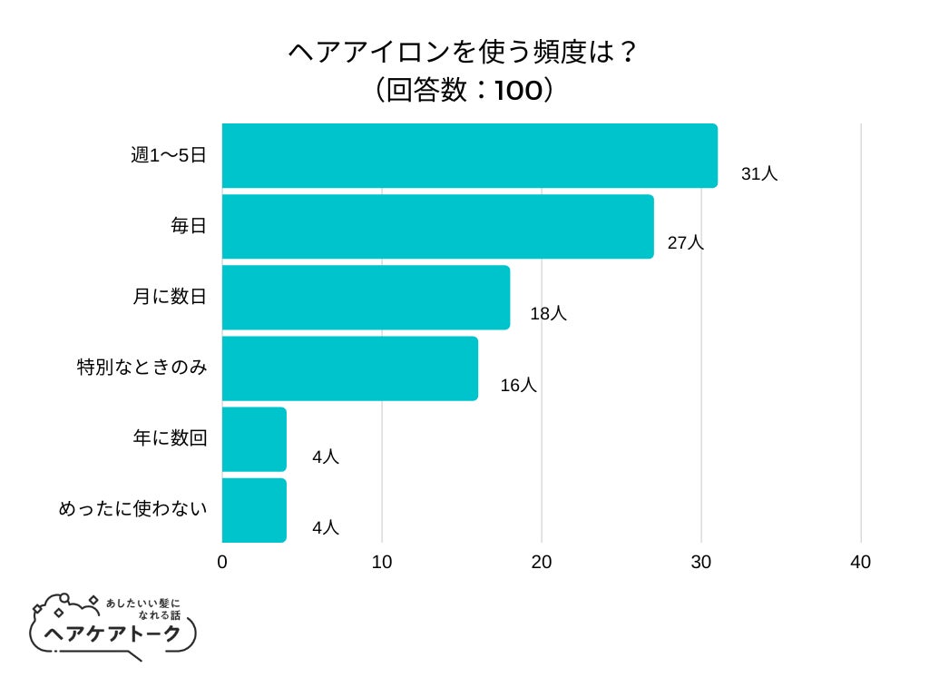 「ヘアアイロンを使う頻度は?」とアンケート調査した結果、1位は『週1~5日』でした。
