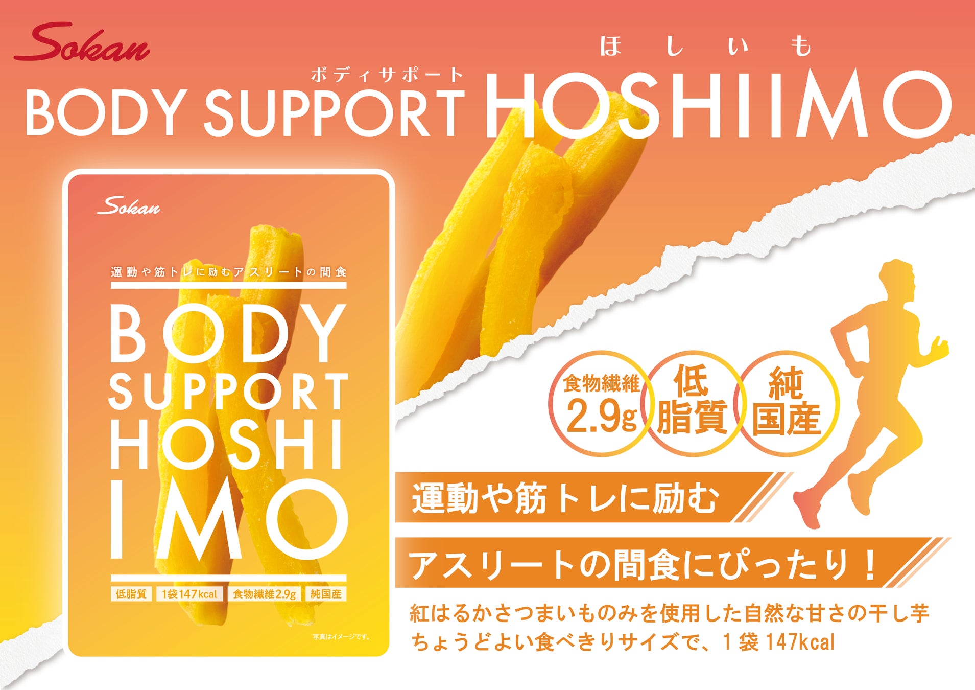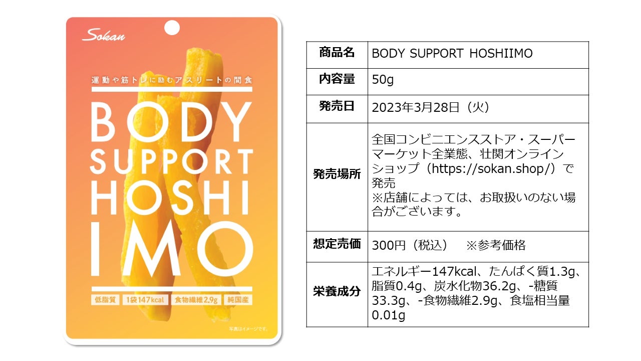 株式会社壮関(本社:栃木県矢板市 代表取締役社長:板山 健一)は、新商品『BODY SUPPORT HOSHIIMO』を2023年3月28日(火)より全国のコンビニエンスストア・スーパーマーケット全業態および壮関オンラインショップ( https://sokan.shop/ )で発売いたします。