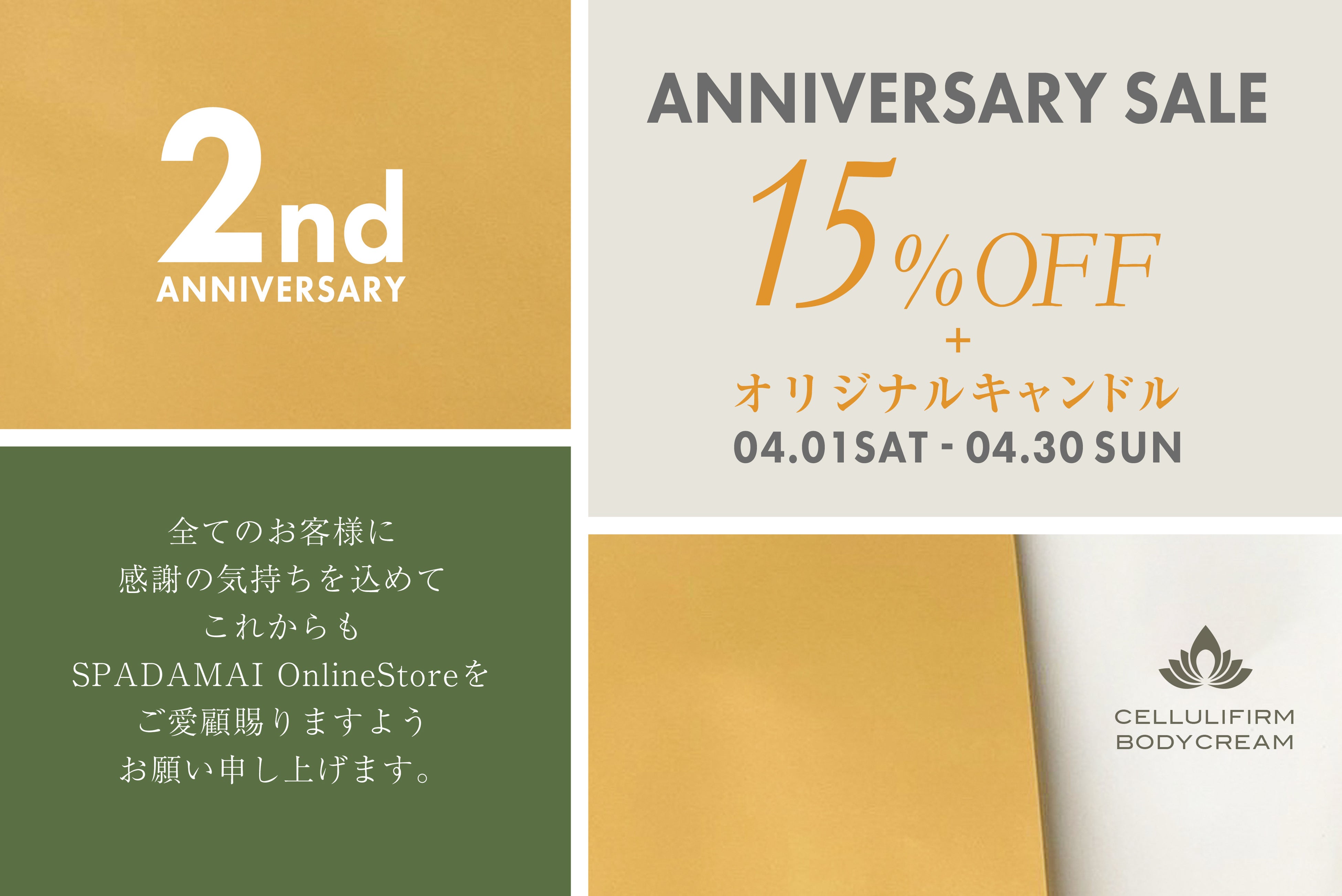 ダマイ公式オンラインストアは、4月6日に開設2周年を迎えます。日頃の感謝を込めて『2nd Anniversary SALE』として「ダマイ セルリファーム フェイスクリーム」製品15%オフのキャンペーンを行います。また、期間内にご購入頂いた方には、オリジナルのアロマキャンドルをプレゼントいたします。