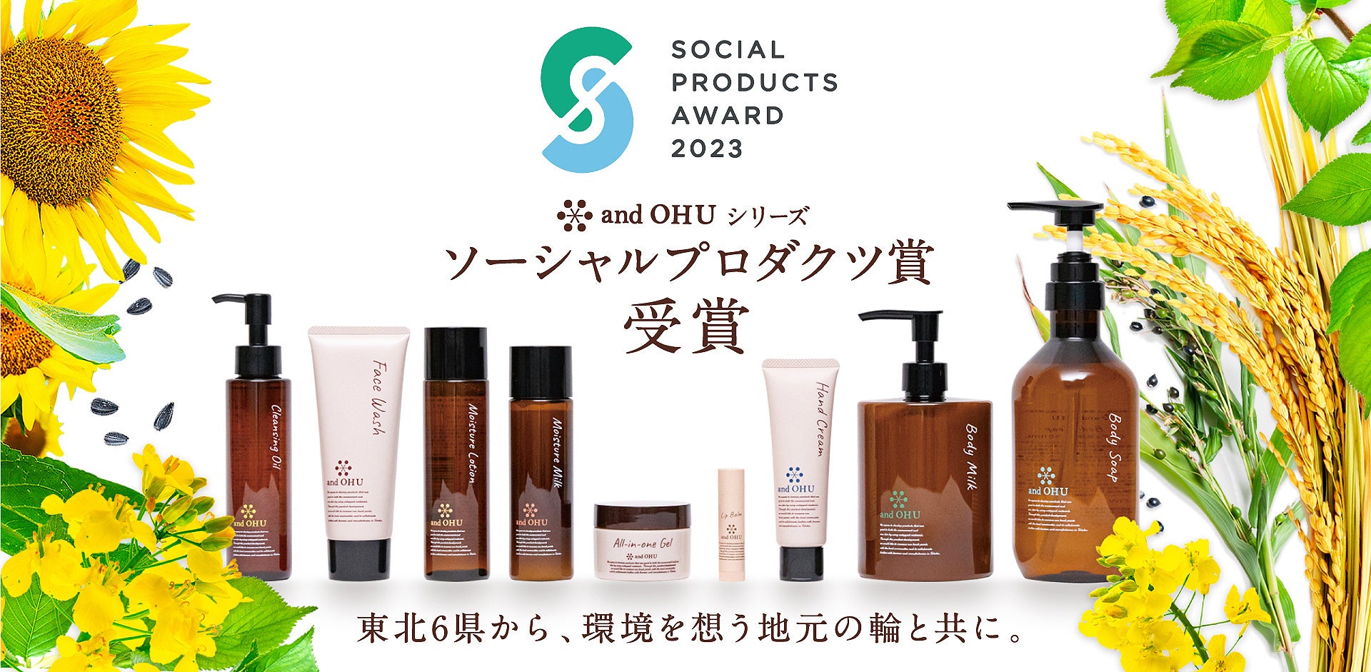 東北の未利用資源を使った素肌と環境にやさしいスキンケア「and OHU」シリーズ、知的障害のある作家の福祉実験ユニットとの商品開発など様々なコンテキストを持つ商品や体験、情報提供を行うことで、社会課題の解決に貢献したいと考えています。