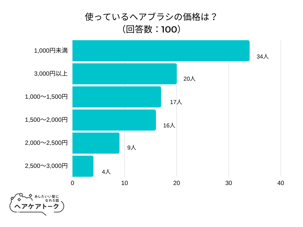 「使っているヘアブラシの価格は?」とアンケート調査した結果、1位は『1,000円未満』でした。