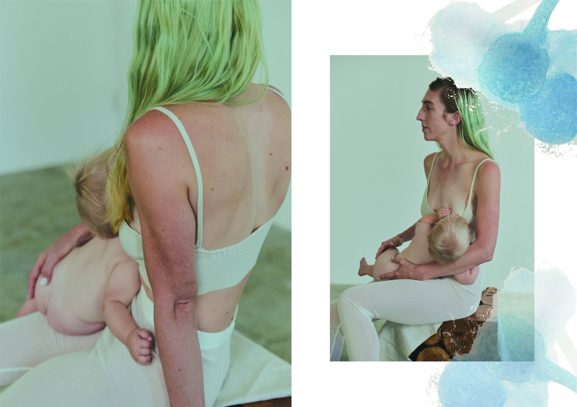 それを叶えているのは、デザイナーの身体性への深い眼差しと実体験です。現代美術に表現されるような生々しく、手触り感のある裸体への執拗とも言える視点と、コンテンポラリーダンサーが感じるのと同じように骨格や筋肉、肌、体の内と外を捉えていく感覚。そして、肌が弱いという実体験と、スポーツウエアデザインで培われた快適性へのこだわりです。