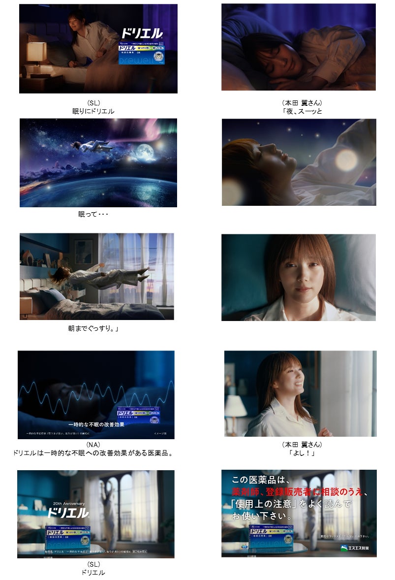 エスエス製薬株式会社(本社:東京都新宿区、代表取締役:社長 ニクヒレッシュ・カルラ)は、睡眠改善薬「ドリエル」(第②類医薬品)のイメージキャラクターに女優の本田翼さんを起用した新TV-CM 『スーッと』篇 (15秒)を2023年4月3日(月)から全国でオンエアを開始いたします。