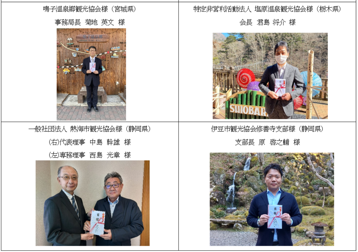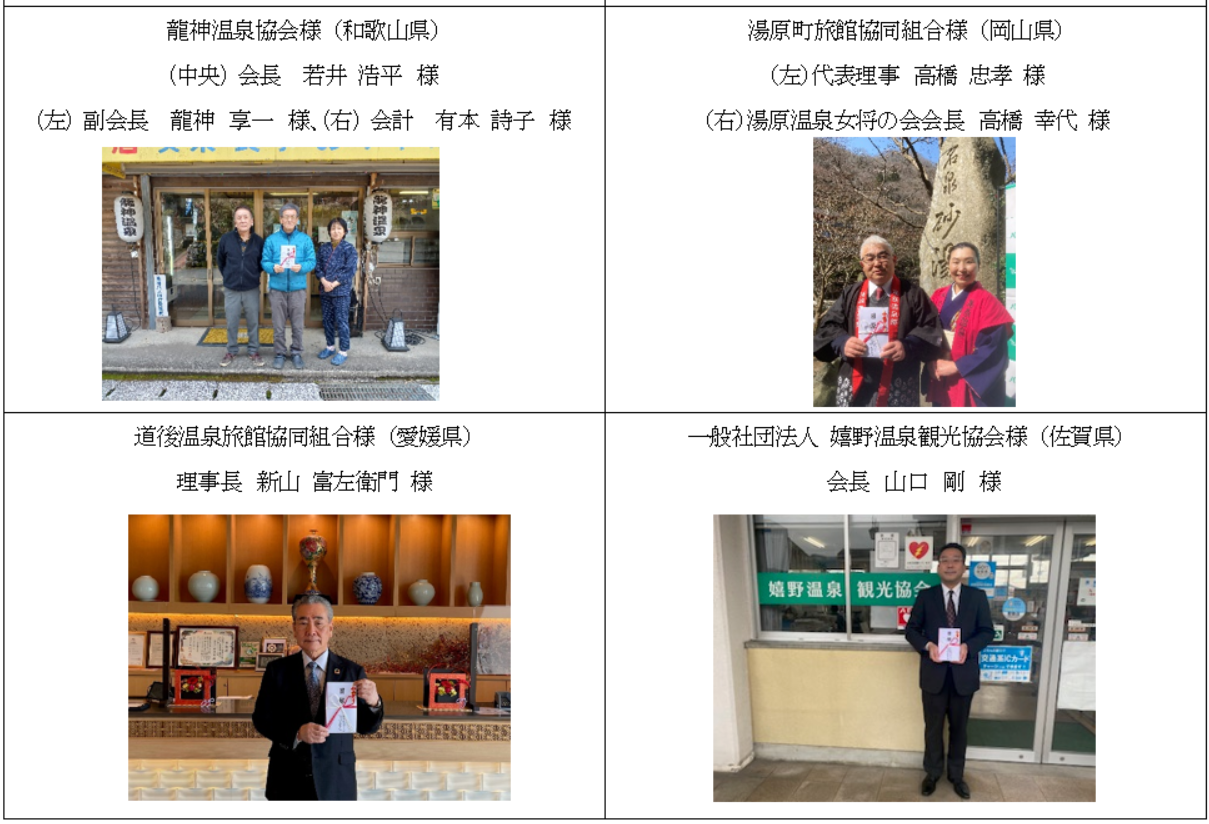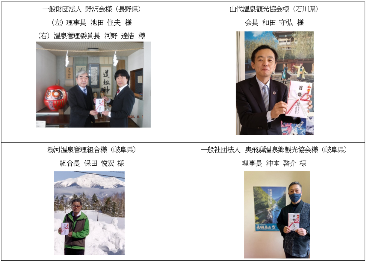 本プロジェクトにご賛同いただき、「日本の名湯」をご購入いただいた皆様に厚く御礼申し上げます。