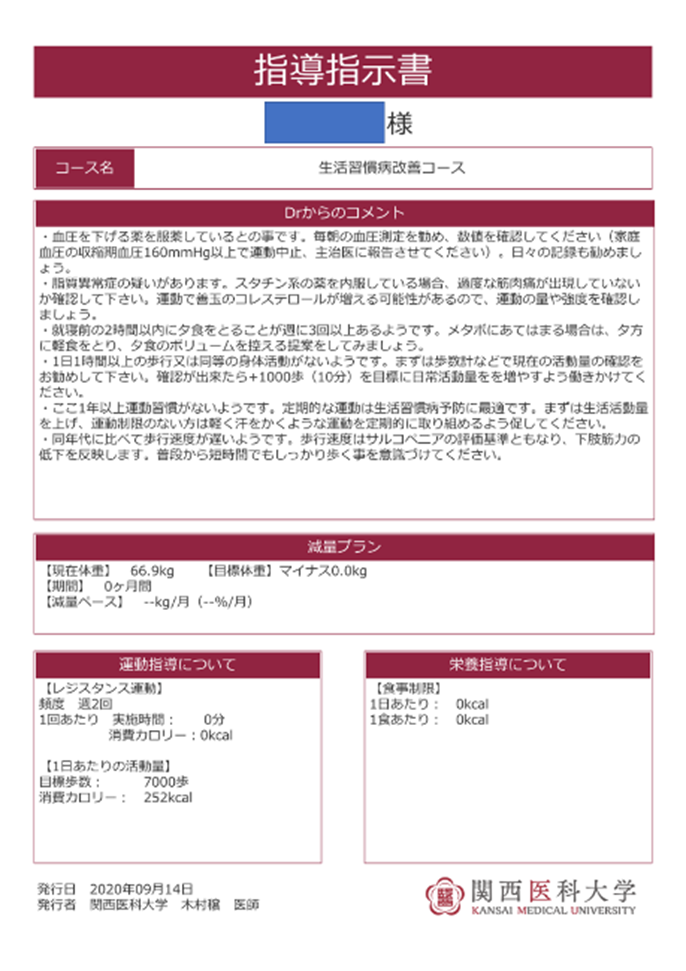 ・運動:関西医科大学付属病院の健康運動指導士とオンラインを中心に指導