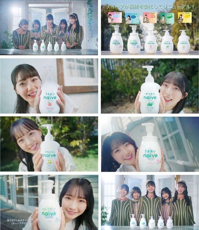 WEB動画では、「選べるナイーブ」を軸に、「ナイーブ PRアンバサダー」の5名が、新しくなった「ナイーブ」ボディソープにワクワクしながら、気に入ったアイテムを選び、各アイテムの香りや、“うるおいなめらか”、“すべすべ素肌に!”、“スッキリ リフレッシュ!”、“うるおいキープ!”、“汗・皮脂によるニオイ汚れオフ!”といった機能を、明るく可愛く伝えています。