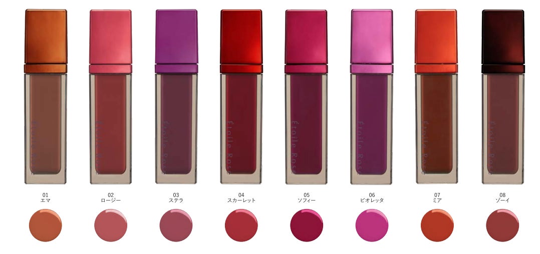 Étoile Roseは、品質と価格のバランスを追求し「ハイクオリティなのにコスパが良い」こだわりのコスメをお届けするブランド。今回のリップコレクションでは、みずみずしいツヤやかさを楽しめる8色展開です。