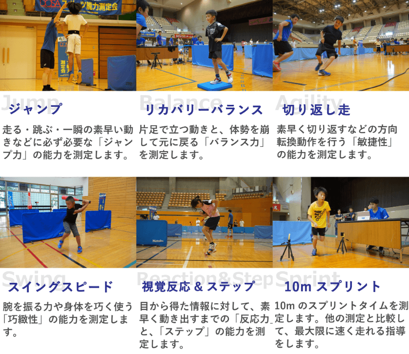 最新の測定機器を使用し、6つの測定種目から運動能力を正確に計測します。