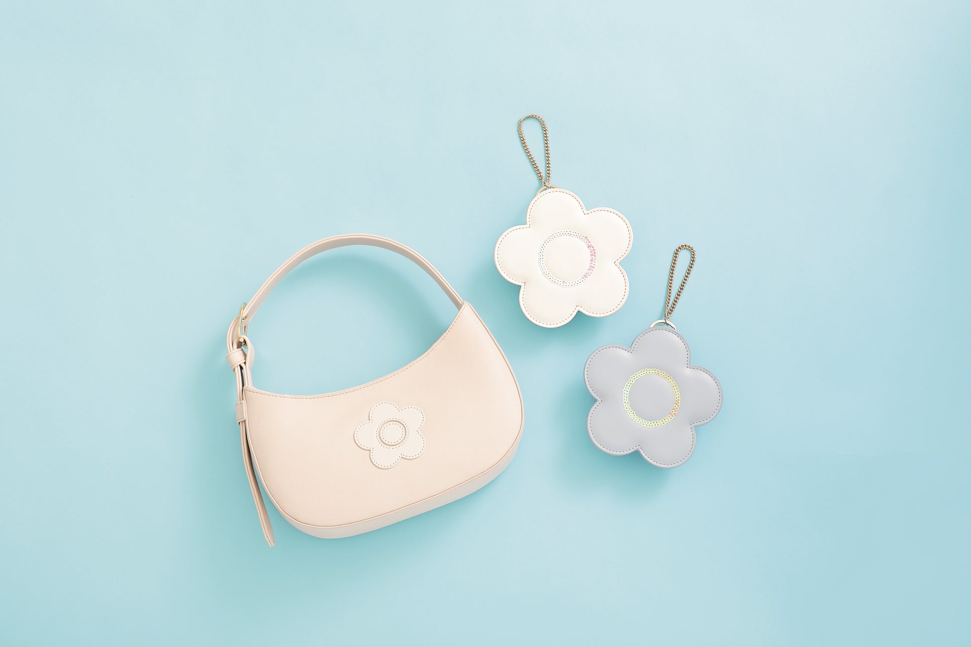 上品なミニトートと、スパンコールがあしらわれたデイジー型のダイカットポーチ。