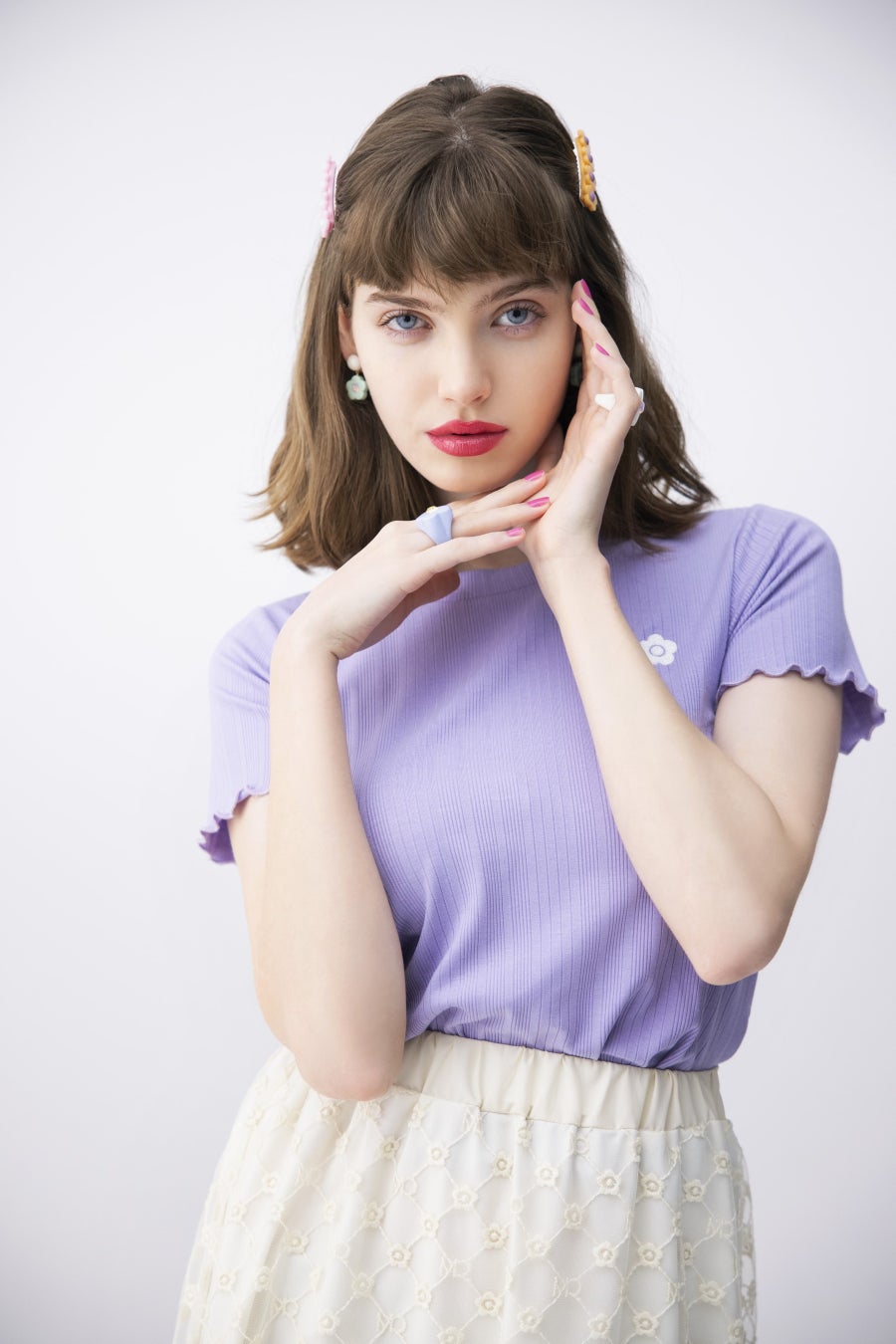 ・ワンポイントデイジーリブメロー プルオーバー(パープル)