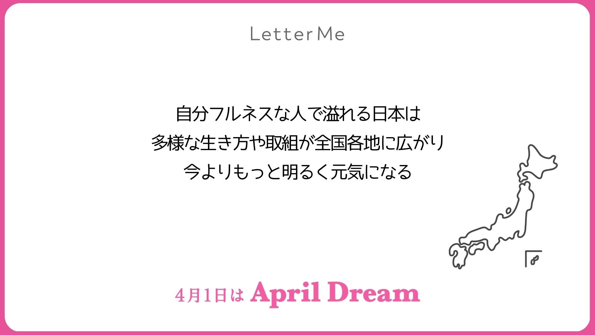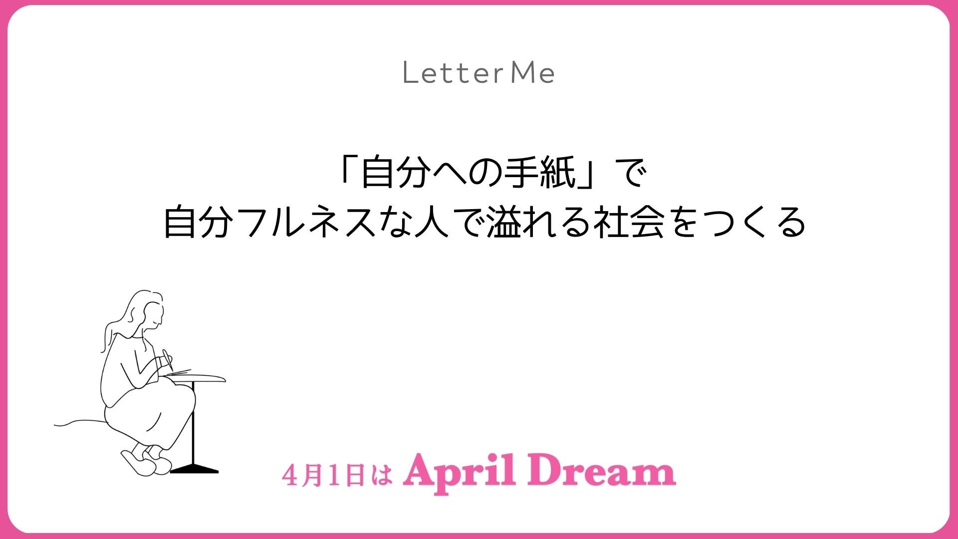 当社は、4月1日を夢を発信する日にしようとするApril Dreamに賛同しています。このプレスリリースは「LetterMe」の夢です。