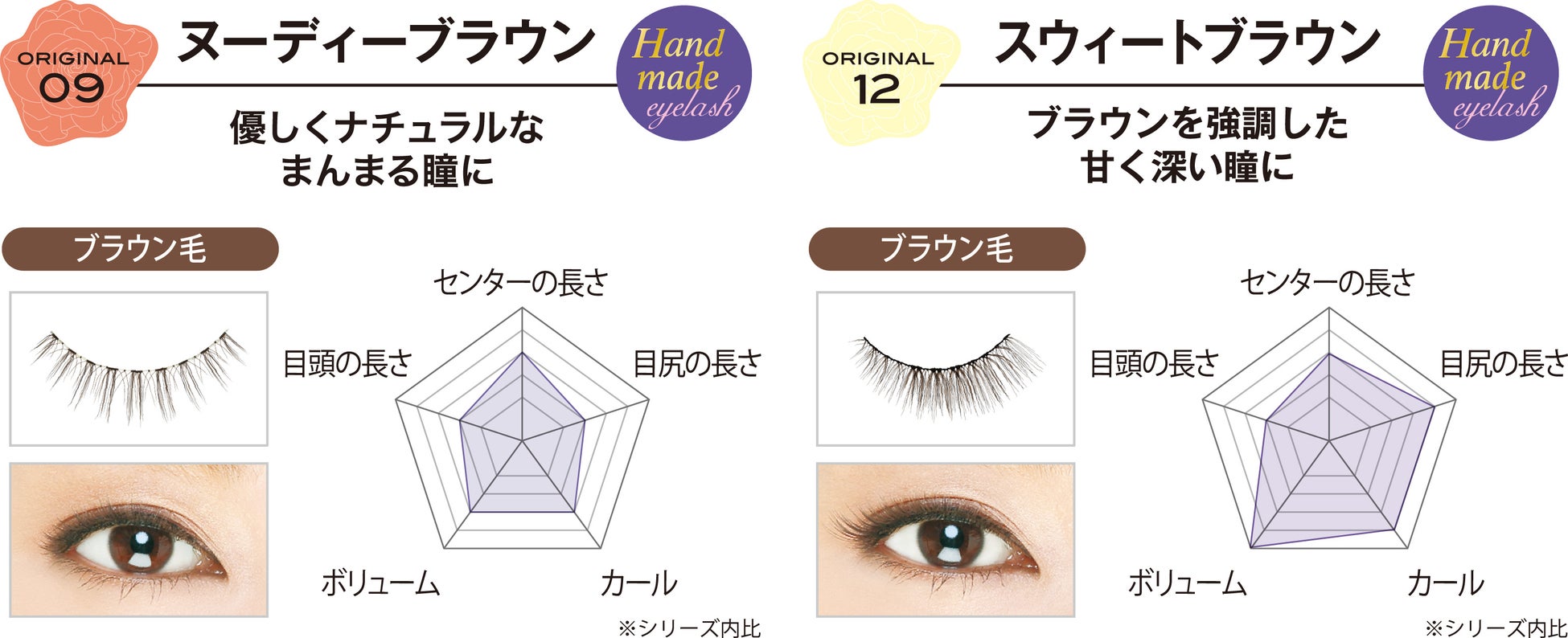 ナッティング製法とは、つけまつげの軸に対して、毛を結びつける方式でつけまつげを製造する製法で、職人がひとつずつ丁寧に編み上げたハンドメイドつけまつげです。