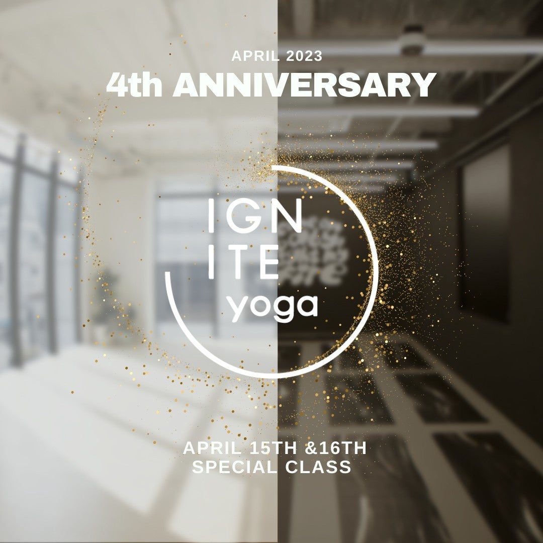 このたび、2023年4月14日(金)に、「IGNITE YOGA」の ”studio h”がオープン4周年、”studio s”がオープン1周年を迎えます。そちらを祝して、日頃より、スタジオに通ってくださる方々や、オンラインスタジオにてヨガを楽しんでいただいてる皆様に、感謝の気持ちを込めて、4月15日(土)・16日(日)に、スペシャルイベントを開催することが決定いたしました。