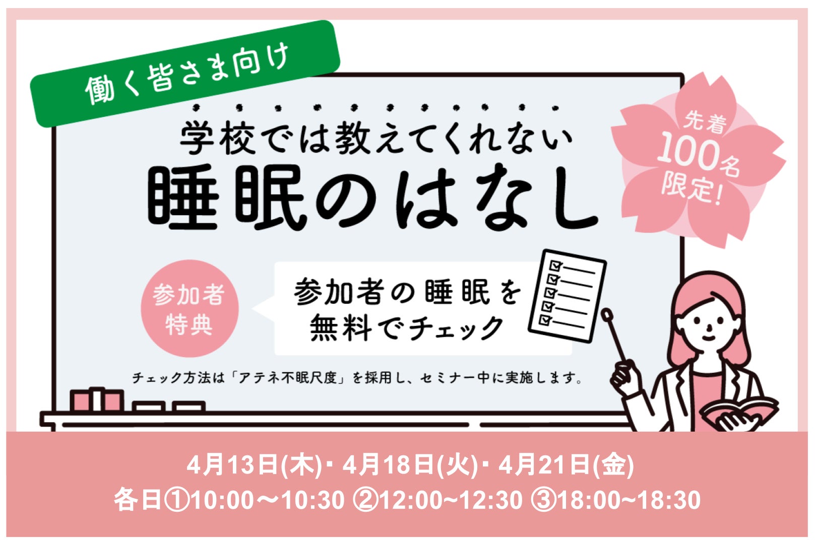 - 働き世代向けの無料オンライン睡眠セミナー「学校では教えてくれない睡眠の話」