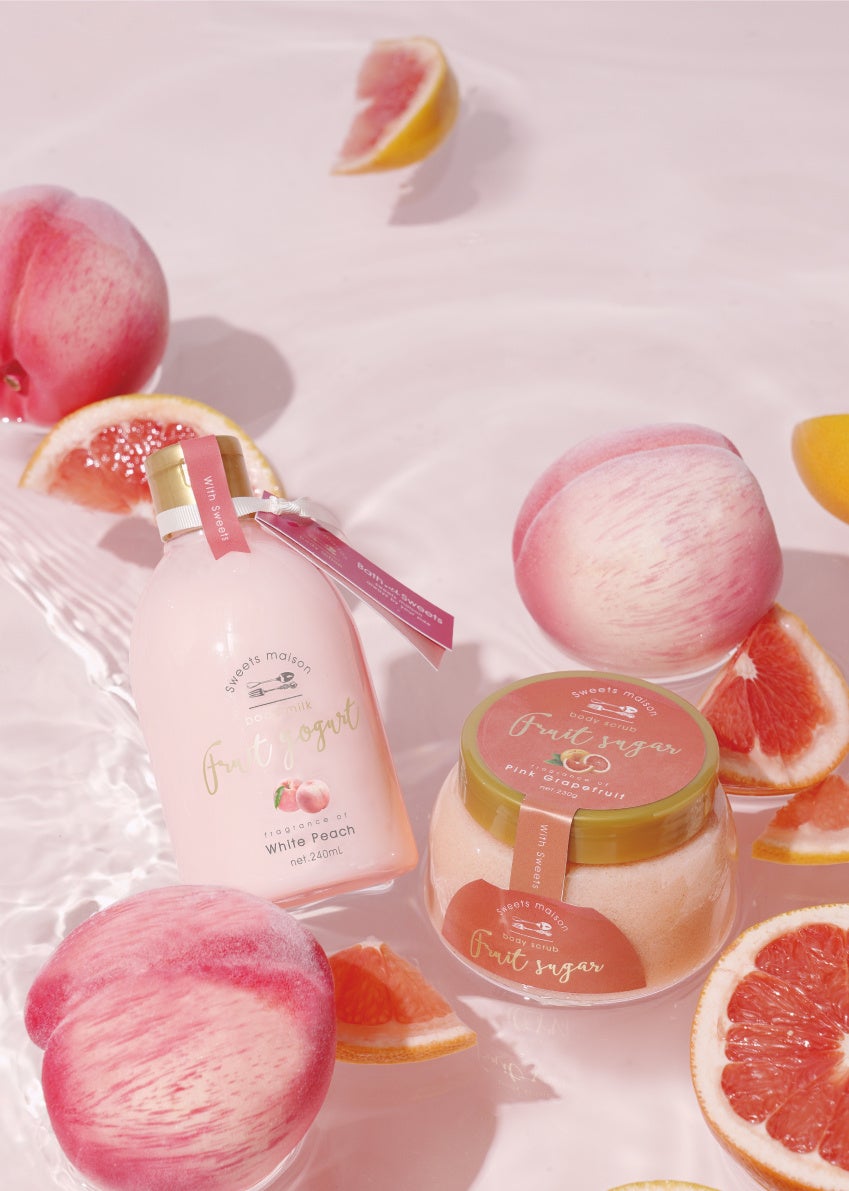 初夏の気配を感じ始める5月、Sweets maisonから、甘くフレッシュなピンクフルーツの香りが楽しめるボディケアアイテムが新登場!