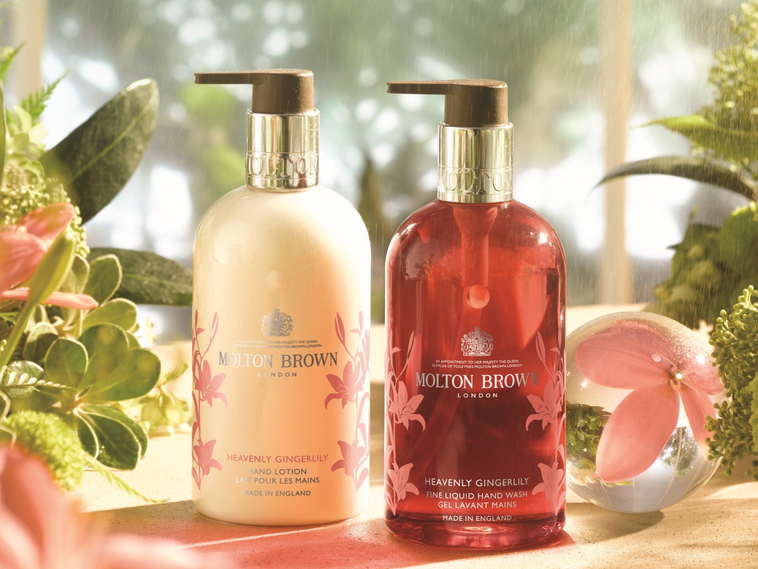 ブーケとカードは、モルトンブラウンのアイコニックコレクション『ジンジャーリリー』をイメージして作成しました。『ジンジャーリリー』はフレグランス、バス&ボディ、ハンドアイテムなどを展開し、20年以上愛されています。