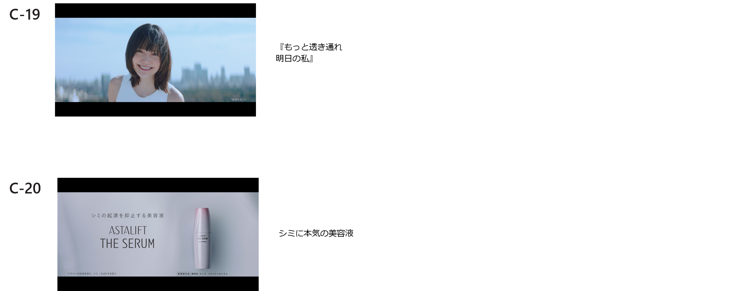 タイトル : アスタリフト ザ セラム「シミに本気の美容液」篇(30秒)