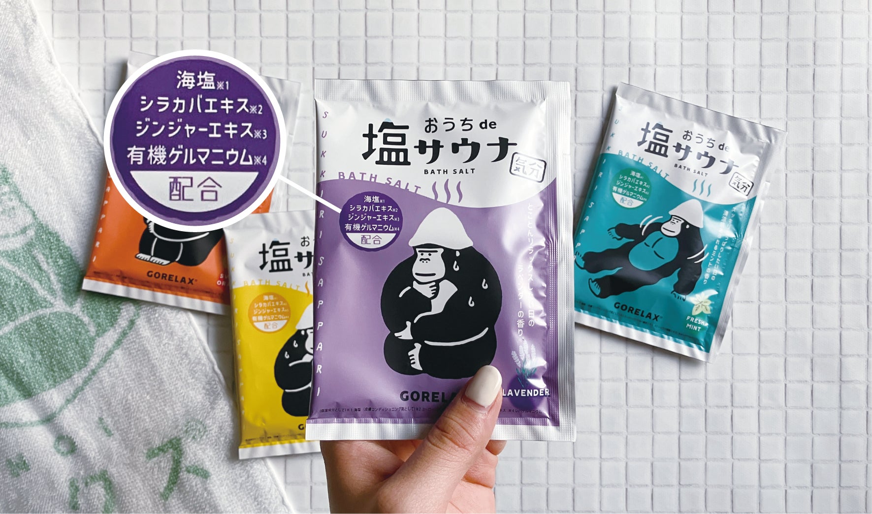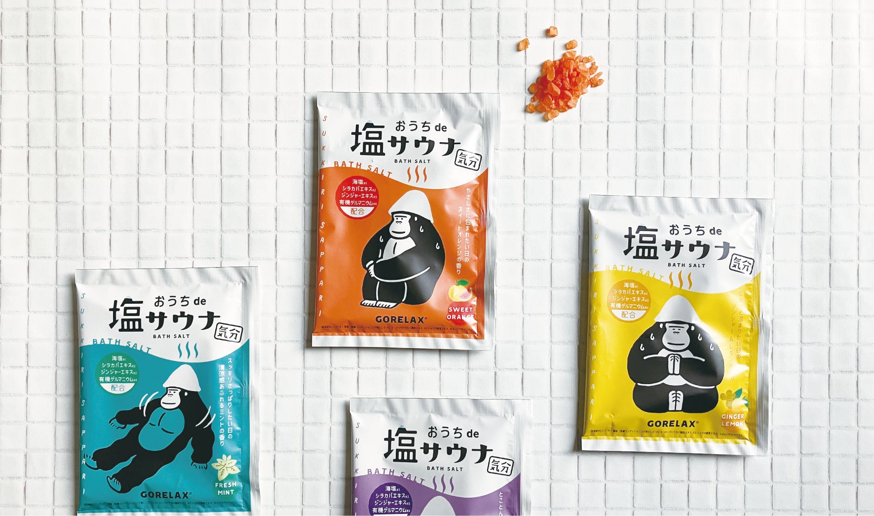 『おうちde塩サウナ気分』を味わいませんかのアートが人気の秘密♡ととのい系サウナブランド【ごリラックス】から、新生活で疲れた身体を癒すバスソルトが新発売!