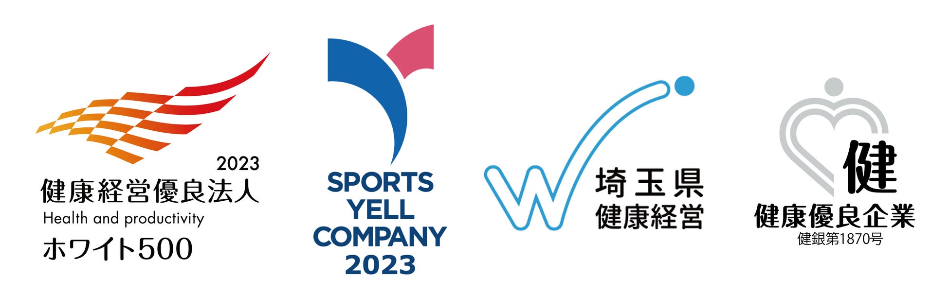 弊社の健康経営への取り組みに対する評価として、経済産業省と日本健康会議が共同で選出する「健康経営優良法人(大規模法人部門)」、スポーツ庁が認定する「スポーツエールカンパニー」、本社所在地である埼玉県が認定する「埼玉県健康経営実践事業所」、および健康保険組合連合会 東京連合会が認定する「健康優良企業「銀の認定」」を取得しています。