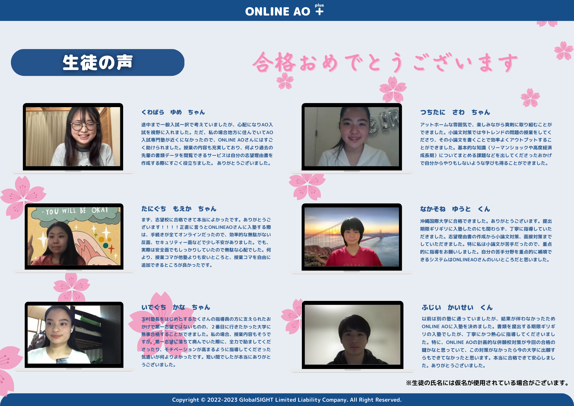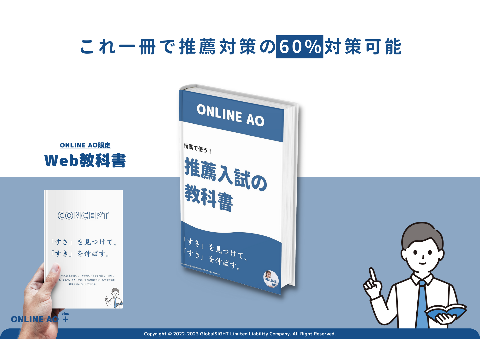 ①オンラインで総合型選抜入試・学校推薦型選抜入試対策を行う塾「ONLINE AO」の運営