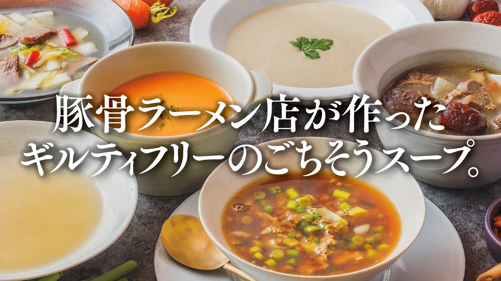 ボーンブロスという骨付き肉と野菜をじっくり煮込んだ旨味と滋養たっぷりのスープをベースに、添加物不使用でかつ塩分控えめながらも、らーめん等のような満足度の高い美味しい食事を目指して開発しました。高栄養かつコラーゲンたっぷりなので、健康や美容に気をかけている方にも嬉しい「飲みほす喜び」を感じながら健康へ向かえる「ギルティフリーのご馳走スープ」です。