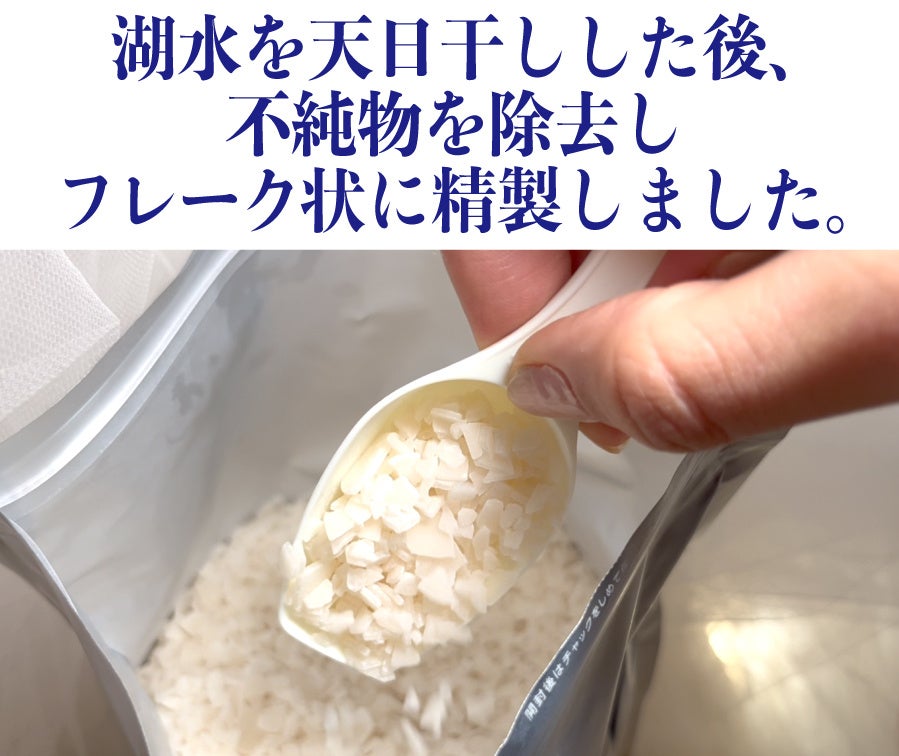 湖水を天日干しし、不純物を取り除いてフレーク状に精製!