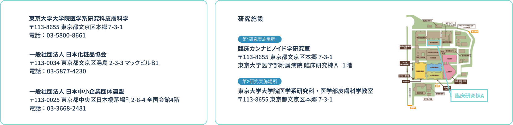 一般社団法人日本化粧品協会は、令和5年4月1日より、国立大学法人東京大学大学院医学系研究科皮膚科学提携のもと、「東京大学大学院医学系研究科臨床カンナビノイド学」(http://ccr.umin.jp/)を設置、共同研究を開始いたします。日本化粧品協会内の組織である「カンナビノイド審査委員会」で行ってきたCBD製品の調査・分析による知見と、植物性カンナビノイドの基礎研究および臨床研究を通して、カンナビノイドの皮膚に対する作用機序を明らかにし、皮膚疾患に対する有効性のエビデンスを創出していきます。