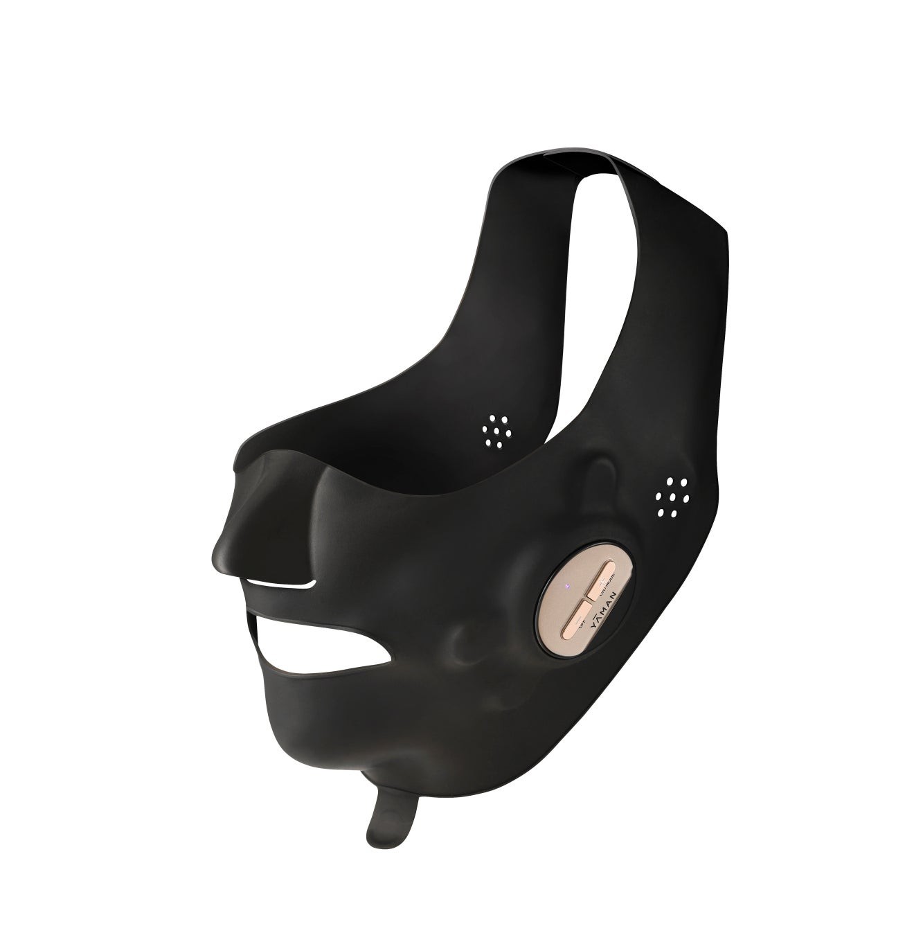 面ファスナーを頭頂部で留めるだけのワンタッチ装着で、フェイスラインまでしっかりホールド。ウェアラブルマスク型のため、つけるだけで適切な部位にアプローチします。