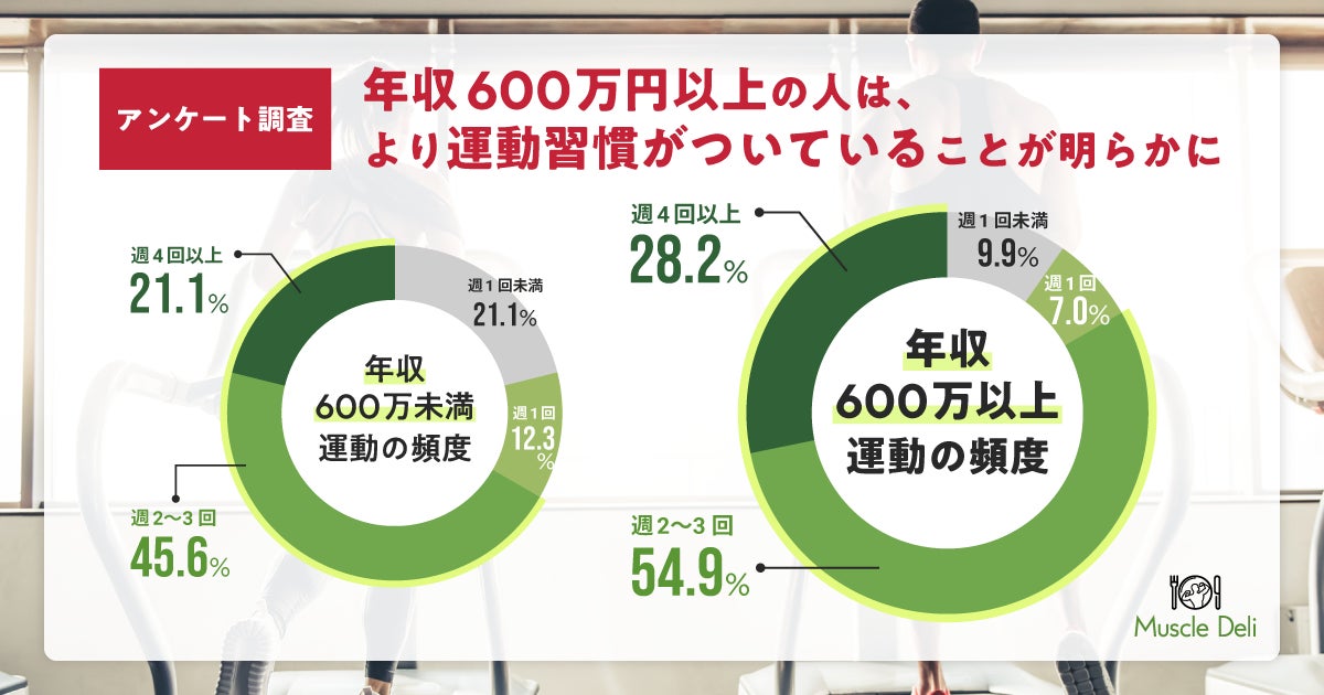 一方、年収600万円未満と回答した人たちは、「週2〜3回」が45.6%、66.7%が週2回以上運動しているという回答になりました。