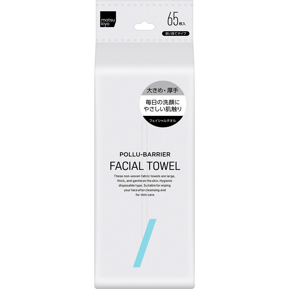 その中で、今回開発した「matsukiyo ポリュバリア フェイシャルタオル」は、清潔に見えるタオルでも、外干しの際に花粉、黄砂、PM2.5などが付着することがあり、肌トラブルにつながる可能性があることに着目して開発した商品です。洗顔後の肌を清潔に保ちつつ、拭く際の摩擦を低減できるメリットがあり、当社の独自調査によると国内でも美容に積極的な方をはじめとして、約4割の生活者が使い捨てペーパーを使用していることが分かりました。こうした背景を受け、今回洗顔後の外的要因による肌悩みに対応する新たな選択肢として商品開発を行いました。