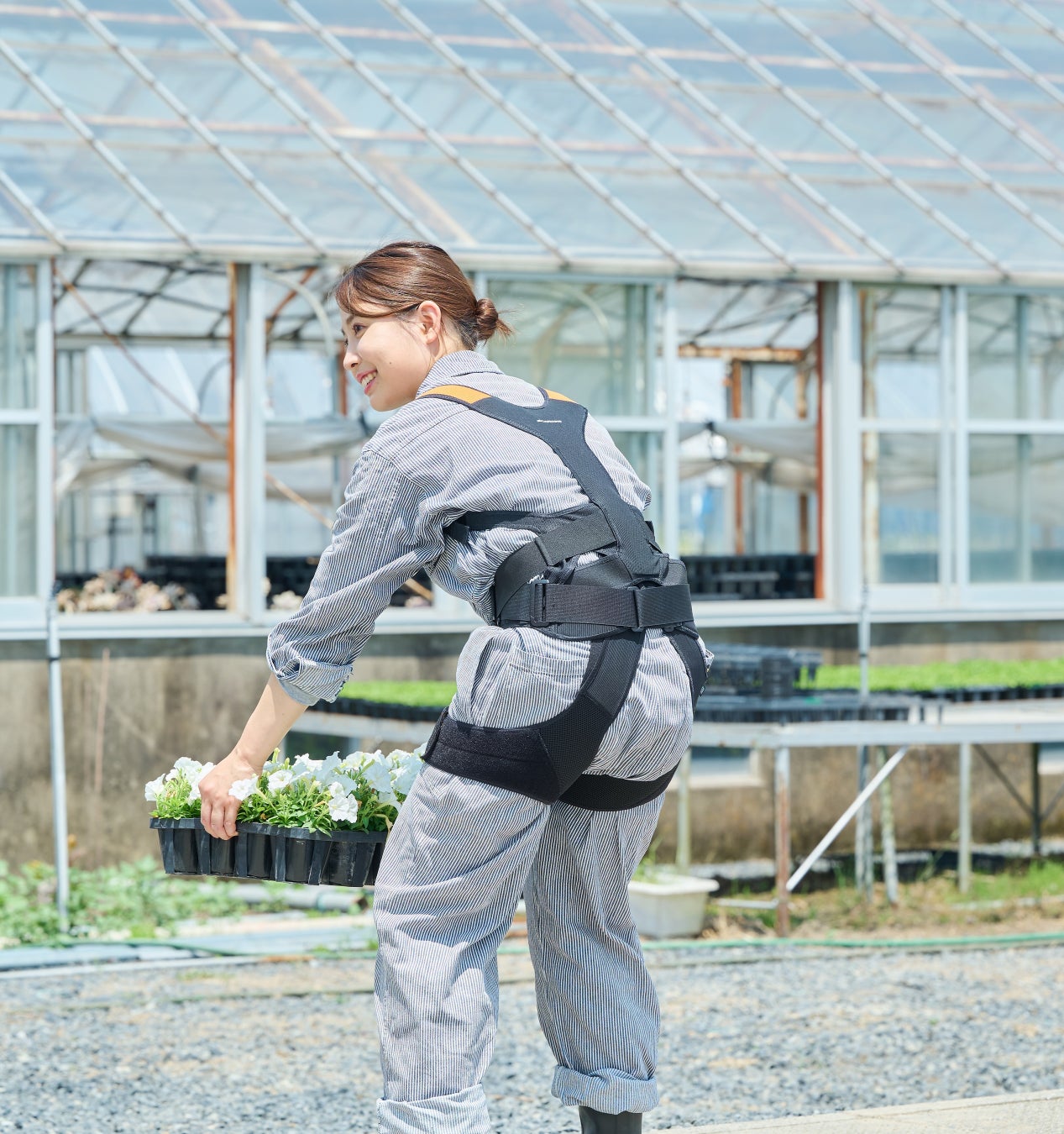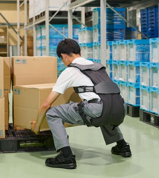中腰姿勢のや持ち上げ作業からくる腰への負担を軽減するアシストスーツです。
