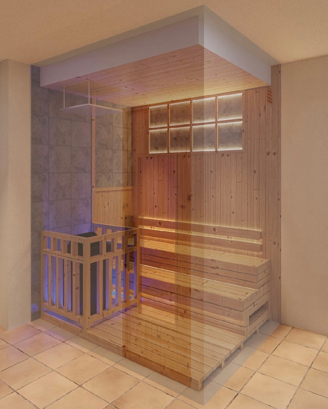 また、寝そべりながらサウナを楽しむ寝サウナも可能な広さです(1750mm)