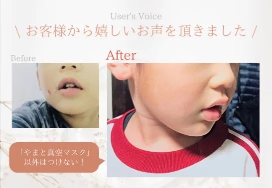 弊社のマスクを使いだしてから肌荒れを起こさなくなり「やまと真空マスク以外のマスクは着けてくれないんです」とお母様より嬉しいお言葉を頂きました。