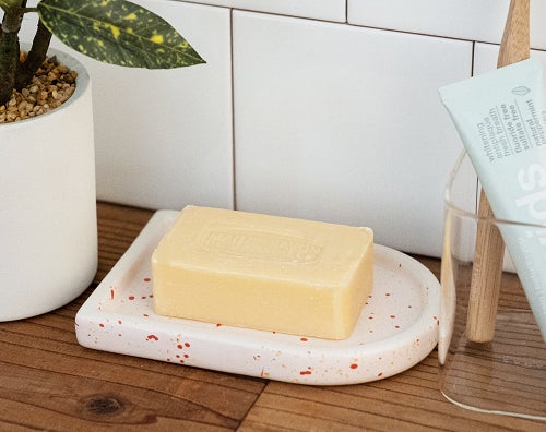 サステナブルな生活が常識になりつつある今、フランスでは環境や、人にやさしい固形石鹸の魅力が再注目されています。今回お届けするソープディッシュは、白雲石を100%使用した自然由来の素材をベースに、ライフスタイルになじみやすいハンドメイドタッチなデザインに仕上げました。固形石鹸を置くのはもちろん、アクセサリーや小物を置くマルチトレイとしてもお使いいただけます。また、アーチ面を使えばインセンスホルダーに早変わり。のんびりしたい休日にはインセンスに火をつけて、心もゆっくりと休息してみてはいかがでしょうか。