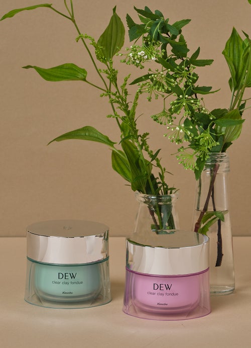 「DEW クリアクレイフォンデュ」は、とろけるような、心地よい泥とろ感触のクレイ状マスク洗顔です。古い角質などによるくすみ・ざらつきを、スクラブでなめらかに磨き上げ、顔全体をつるんとワントーン明るい肌に導きます。美容オイル*3(保湿)配合で、しっとりとした洗い上がり。天然精油*4をブレンドした、数量限定の“ローズミューク”は、ローズドメ、ダマスクローズ、ゼラニウムにパチュリなどをアクセントとした、贅沢で幸福感あふれる香りで、”チルミント”は、清涼感を与えるペパーミント、スペアミントにリラックス感のあるクラリセージなど、天然精油*4が織りなす香りです。