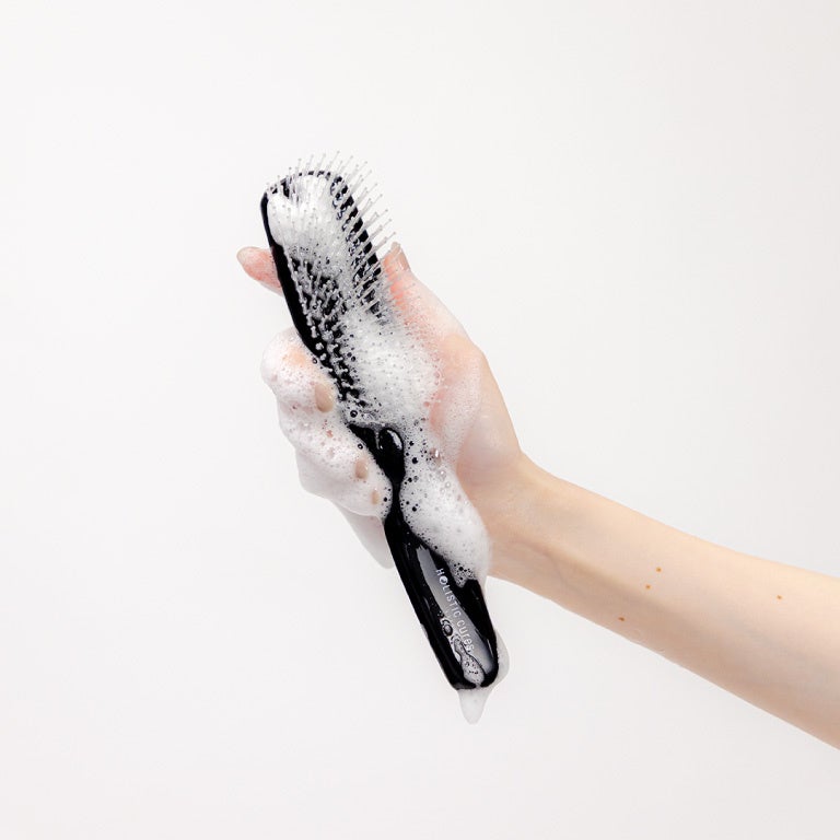 髪全体に泡が広がったら「トトノイブラシ」を使って頭皮をブラッシングします。ブラッシングが終わったらシャンプーを流します。