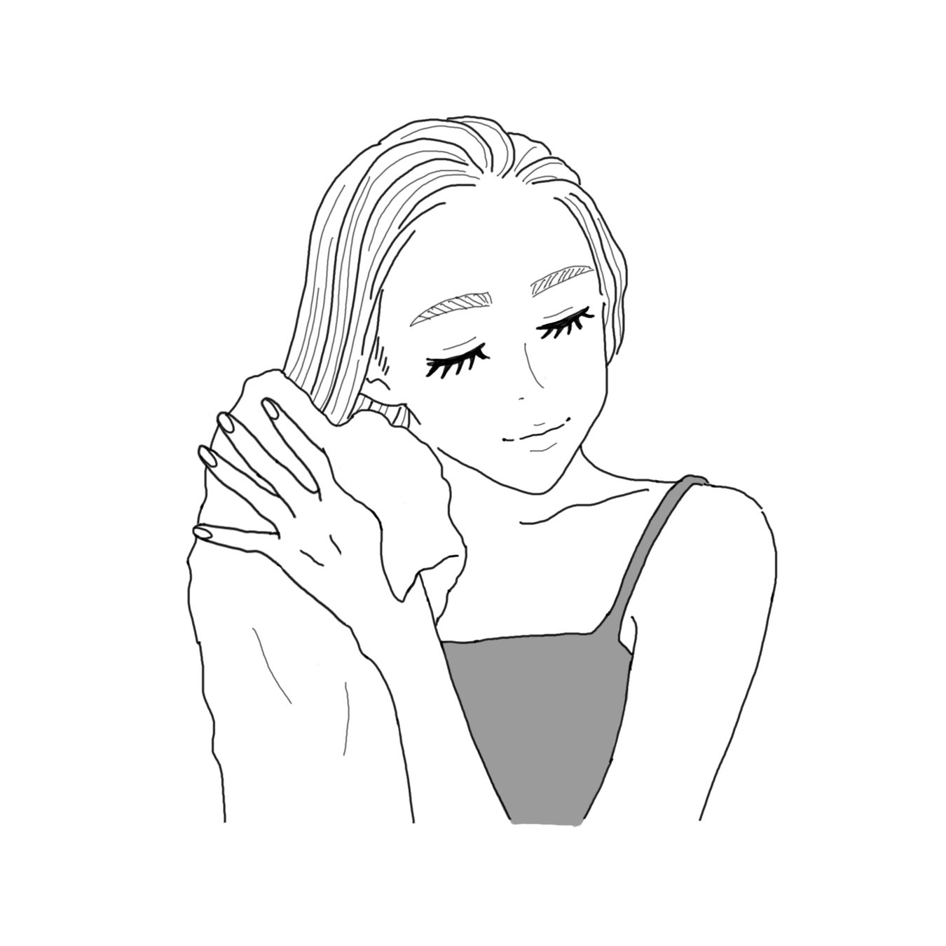 濡れている髪はとてもデリケート。タオルドライをするときは、濡れた髪を「ヘアドライタオル」でやさしくポンポンと押さえながら余分な水分を取り除きます。 毛先から少しずつ髪のもつれをとかした後、根元から毛先に向かってブラシを通すことで髪が早く乾かせ、まとまりのある髪に仕上がります。