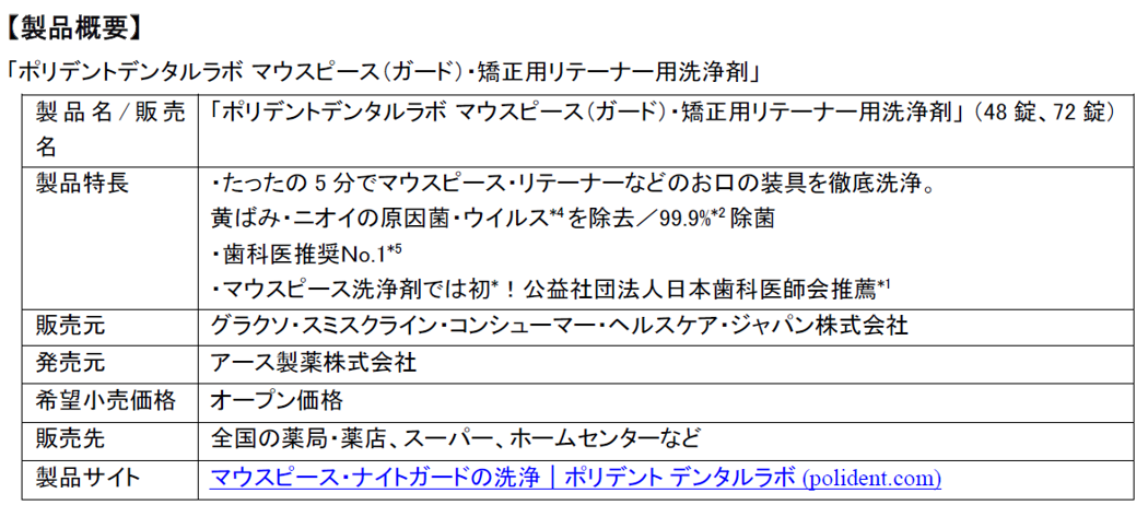 グラクソ・スミスクライン・コンシューマー・ヘルスケア・ジャパン株式会社(代表取締役社長:野上 麻理、本社:東京都港区、以下、GSKコンシューマー・ヘルスケア)は、「ポリデントデンタルラボ マウスピース(ガード)・矯正用リテーナー用洗浄剤」が、利便性と効果、また歯科保健・歯科医療の発展及び普及に寄与することが評価され、マウスピース洗浄剤としては初の公益社団法人日本歯科医師会の推薦を受けましたことをお知らせします。