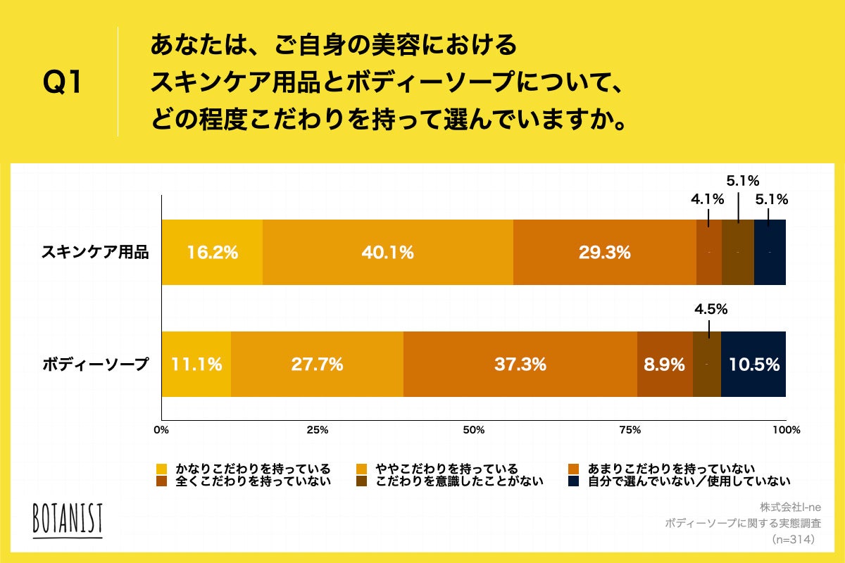 株式会社I-ne (本社:大阪市北区) が展開するボタニカルライフスタイルブランド「BOTANIST(ボタニスト)」は、「良いお肌の日(4月18日)」に向けて20~50代の女性314名に、スキンケア・ボディーソープに関する実態調査を実施しました。