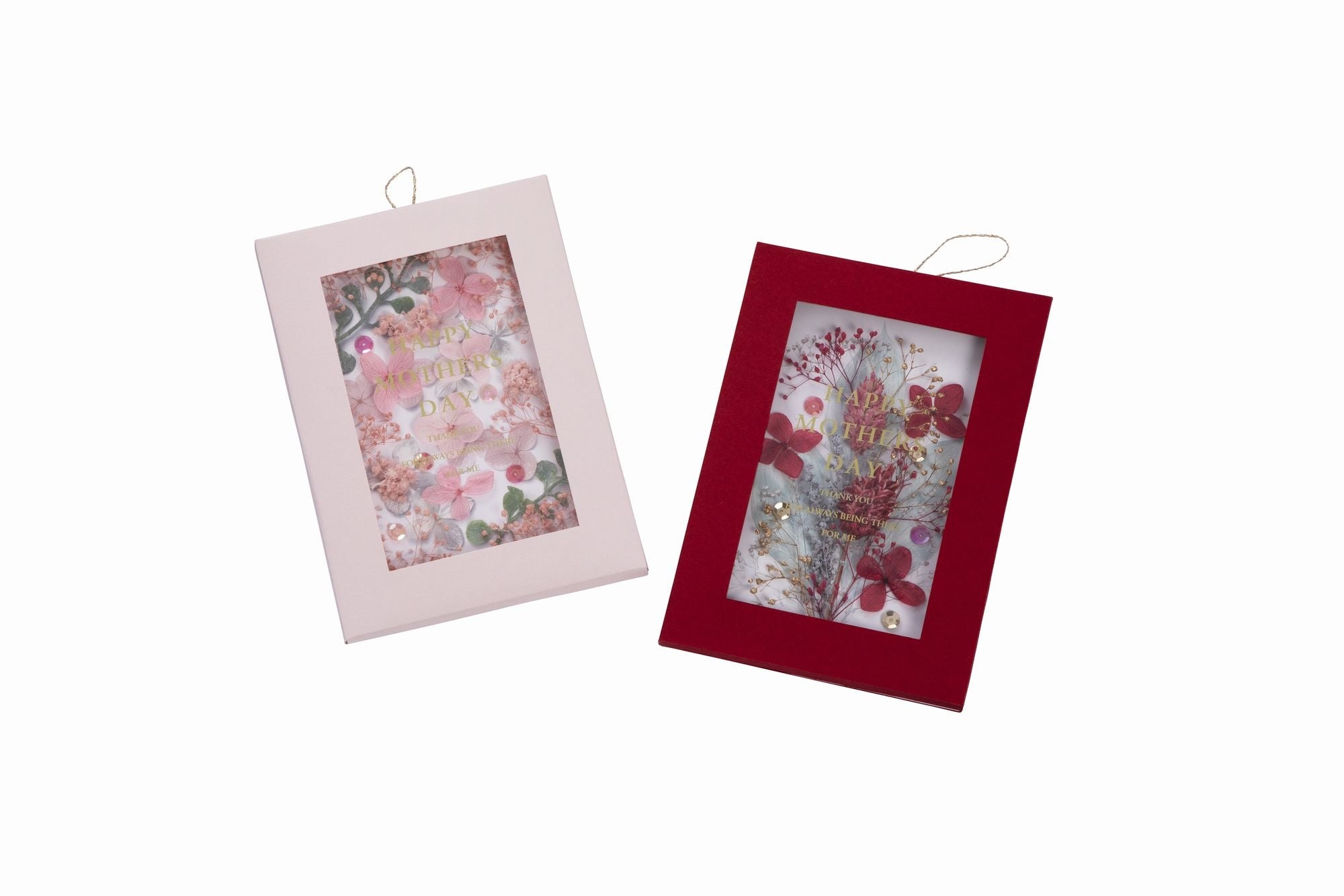 ハーバリウムをフレームに閉じ込めたような母の日カード。