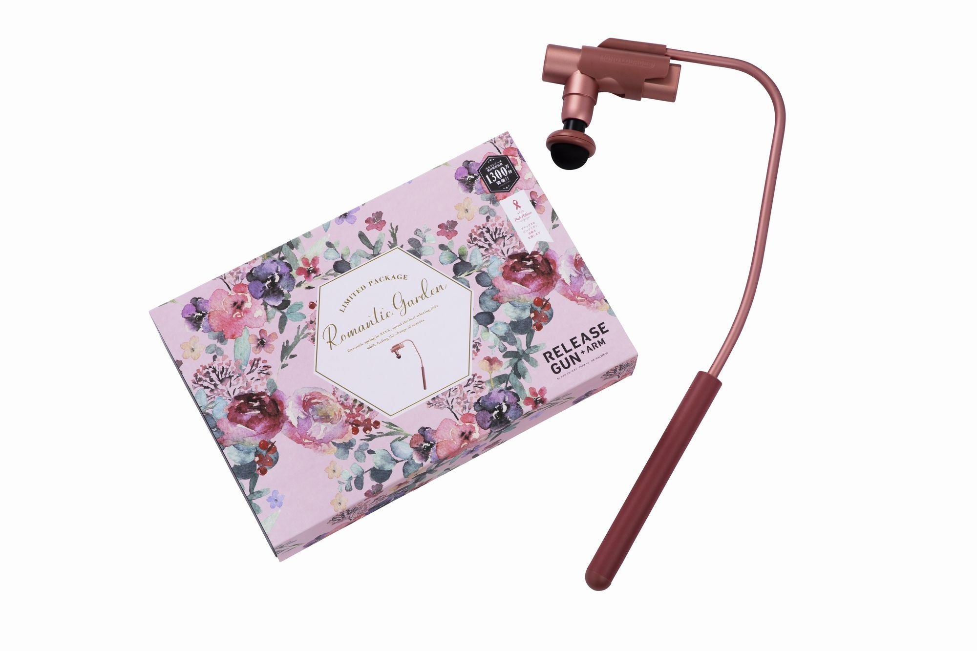 先端のアタッチメントが振動することにより、体をほぐす美容ギア。手が届きにくい背中や腰もケアできる専用アーム付き。母の日限定デザインBOX。
