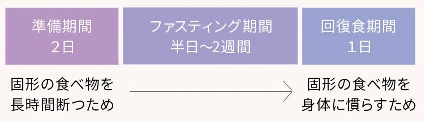 しかし、「ファスティング期間を何日に設定したらいいのか?」「準備期間と回復期間」のケアが大変など、