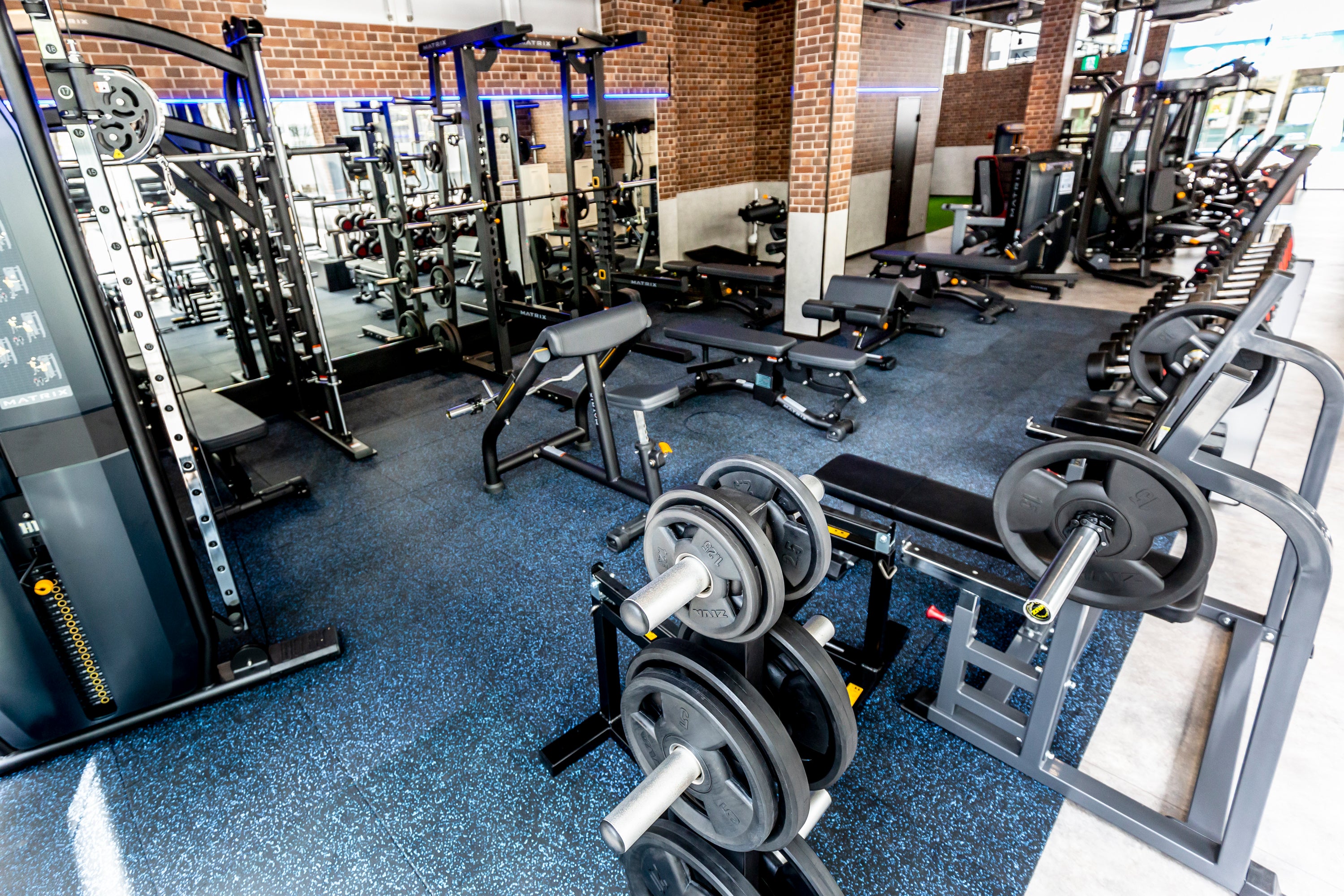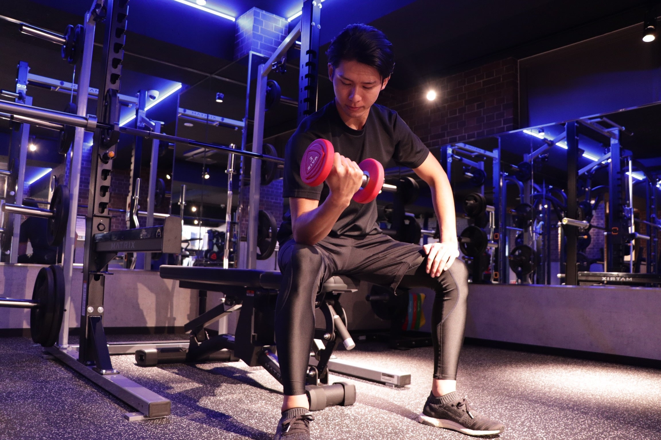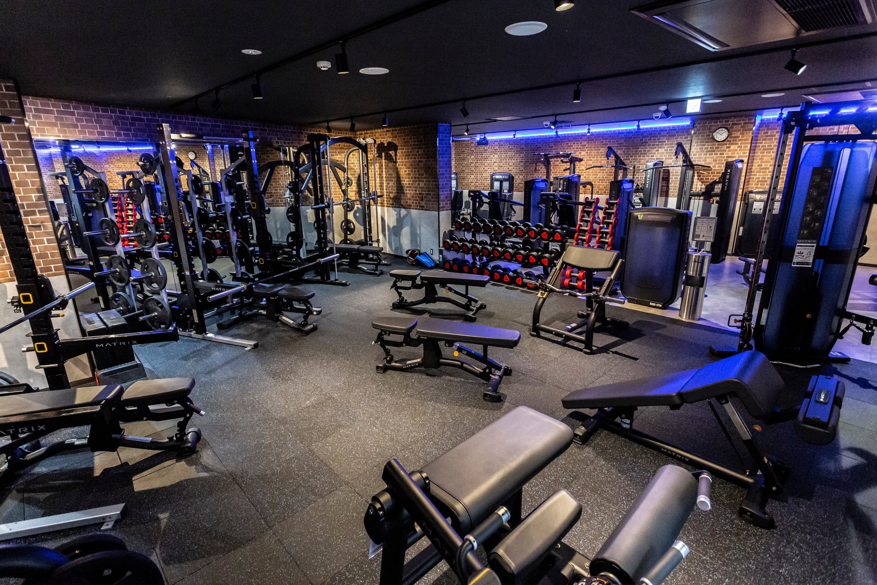 米国のフィットネスジムをイメージさせるスタイリッシュな空間。