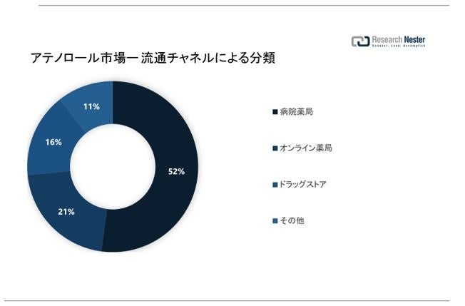 流通チャネルに基づいて、世界のアテノロール市場も分割され、病院の薬局、ドラッグストア、オンライン薬局などに需要と供給について分析されます。これら4つのセグメントの中で、病院薬局セグメントは2035年に約49%のかなりのシェアを獲得すると予想されます。セグメントの成長は、世界中の病院の急増率と相まって、より良い治療を受けるための病院での高血圧、不整脈、狭心症などの患者プールの増加に起因する可能性があります。一方、オンライン薬局セグメントは、世界中のユーザーの間でこれらのオンラインプラットフォームの認識が高まっていることを背景に、予測期間中に印象的なCAGRを目撃すると予測されています。