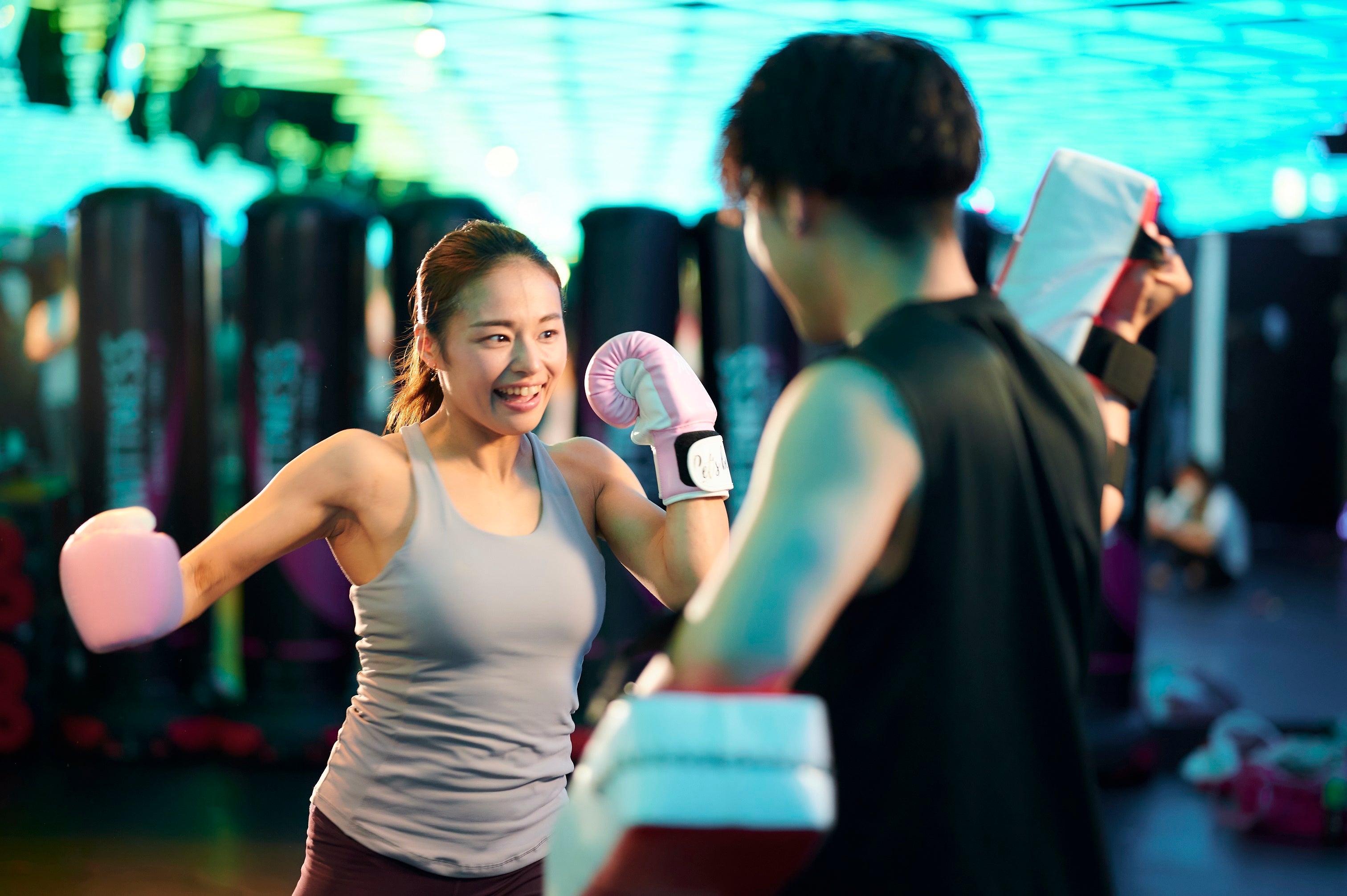 J-POPとK-POPの音楽に合わせ、サンドバックにパンチとキックを打ち込むクラスです。