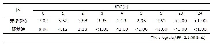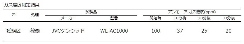 *当社、光触媒除菌脱臭機「WL-AC1000」による試験結果。