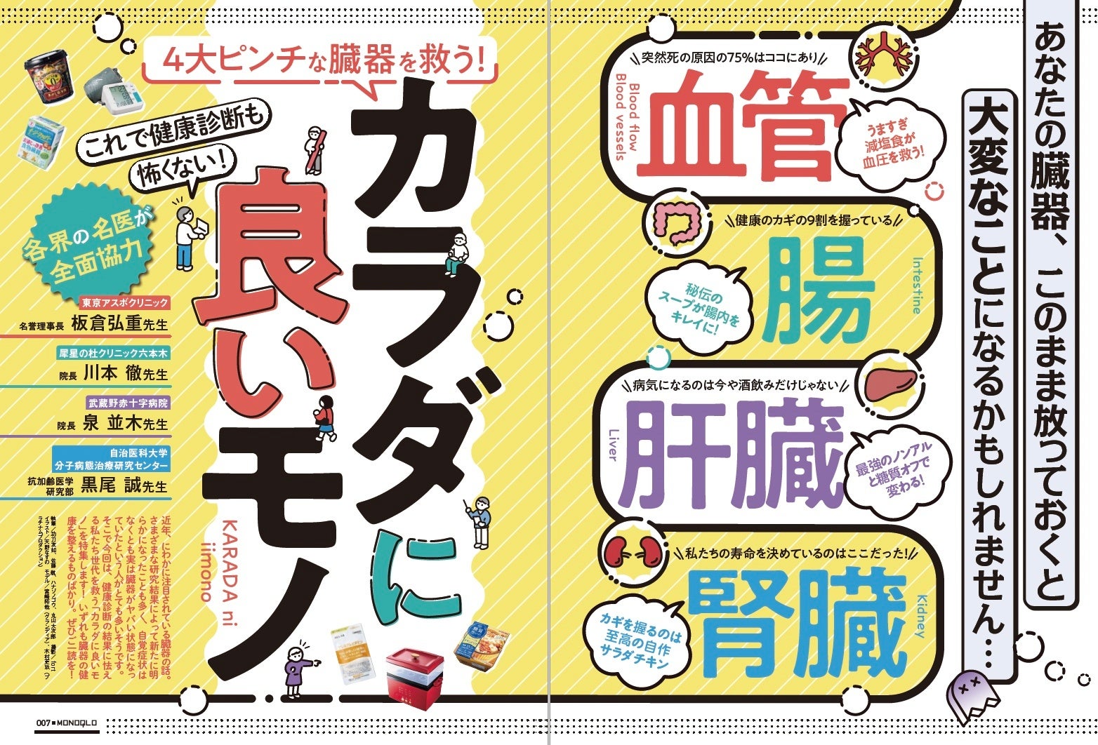 6月号は、臓器の健康を整える「カラダに良いモノ」を大特集! 4大ピンチな臓器(血管・腸・肝臓・腎臓)を救う自宅用血圧計や減塩食、サプリにスムージーミキサーまで、各界の名医やプロたちがオススメするアイテム&ワザを大公開。そのほかにも、保険のプロがガチ審査した「入っていい保険&ダメな保険 2023」、キンキンに冷えた炭酸を外出先でも楽しめる「真空断熱炭酸ボトル 人気10選」など、今欲しい情報満載でお届けしています。本リリースでは、編集部が“本当におすすめできる”製品の⼀部をご紹介します。