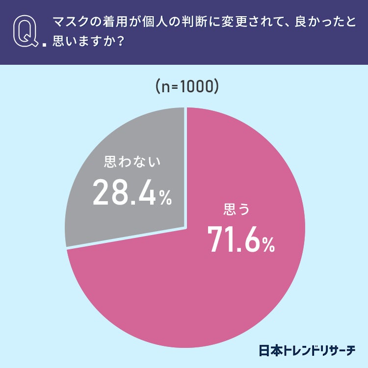 71.6%と半数以上の方が、マスクの着用が個人の判断に変更されて「良かったと思う」と答えました。
