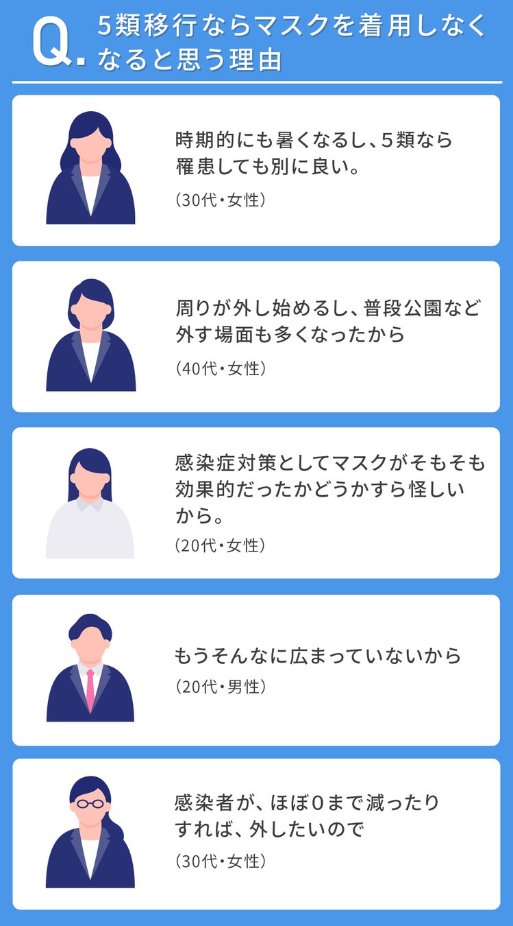 一方で「着用しなくなると思う」と答えた方の理由も聞いてみました。